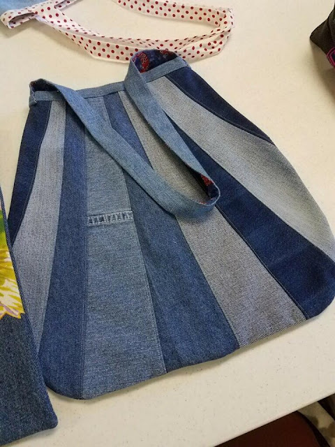 Linda brought several denim tote bags she made for an upcoming craft sale.