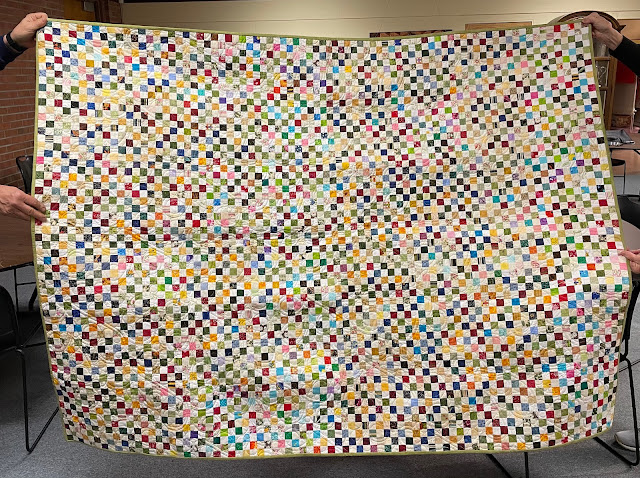 This wonky patchwork quilt was made by Wanda.